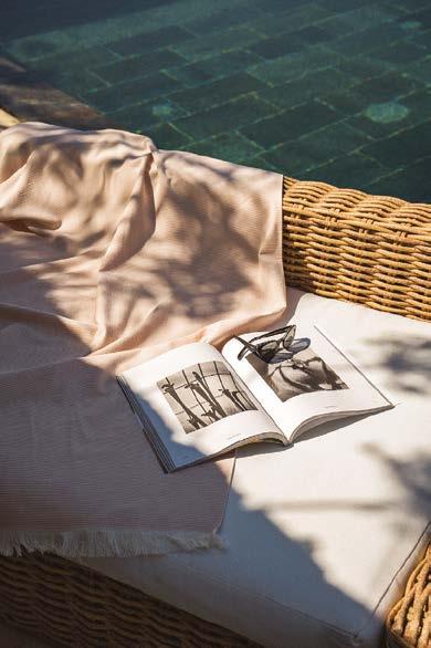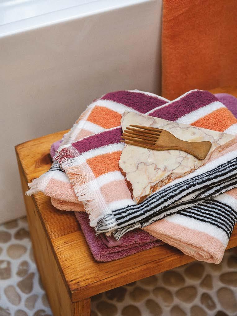 The freshness of linen, the lightness of cotton, the softness of velour chenille, and the timeless caress of classic terry cloth. The new bathroom linens focus on natural fabrics, alternating soft hues with bold colors and vibrant patterns that instantly evoke a summer mood. Between endless moments of relaxation and high-energy spa-like rituals, the feeling of well-being is immediate