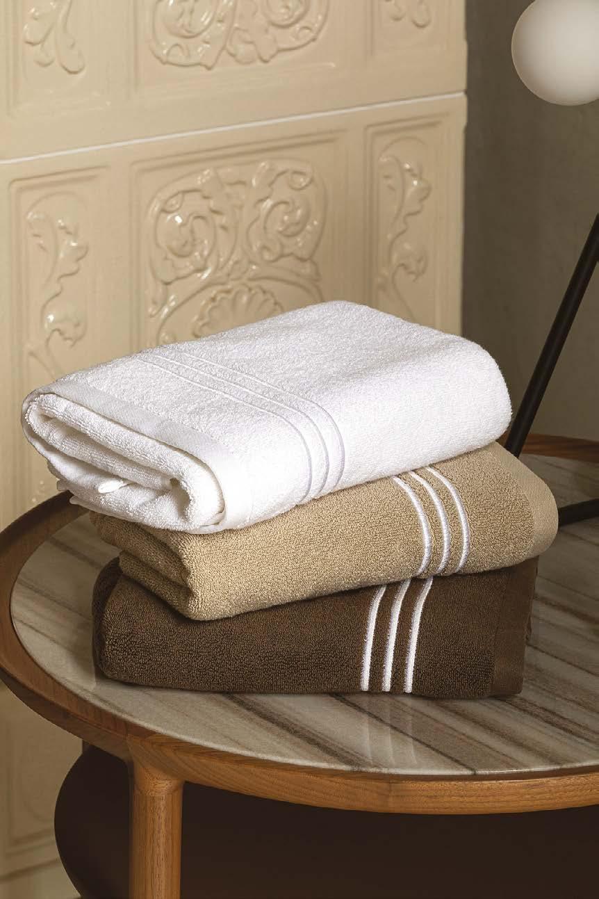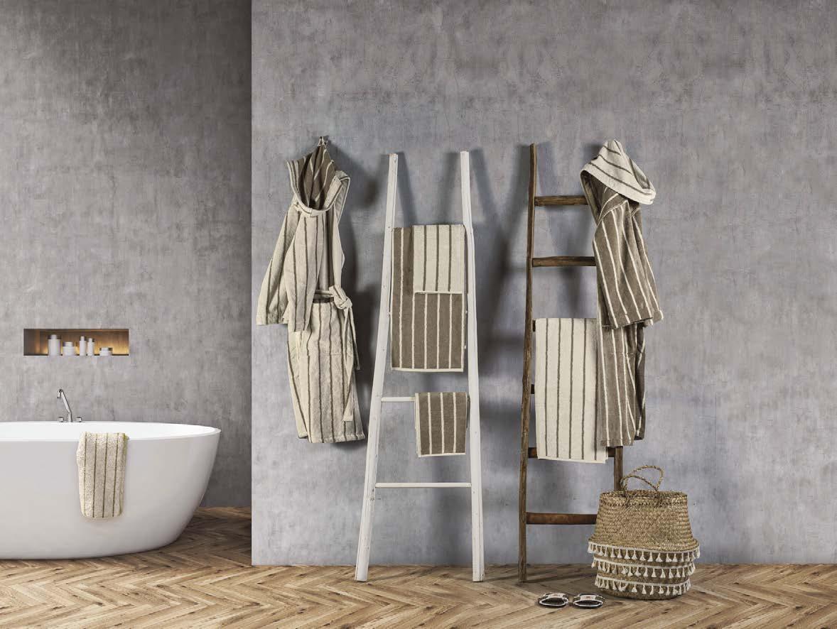 Made of high-quality yarndyed cotton, Fazzini’s Gradazioni terry collection expands with new colors, turning the classic striped pattern into a year-round mood. Crafted from 500 g/m² mélange terry, the line includes guest towel (38x50 cm), hand towel (50x110 cm), bath towel (100x180 cm) and bathrobe.