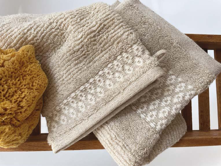 Gabel1957 turns the home into a full wellness retreat, with natural fabrics as gentle caresses. The Naturae line celebrates sustainability with Fonte and Fiume, crafted in yarn-dyed jacquard terry made from pure hydrophilic cotton and twisted yarn, finished with an exclusive treatment. Fonte features a double sculpted motif, while Fiume showcases a frame-placed pattern.