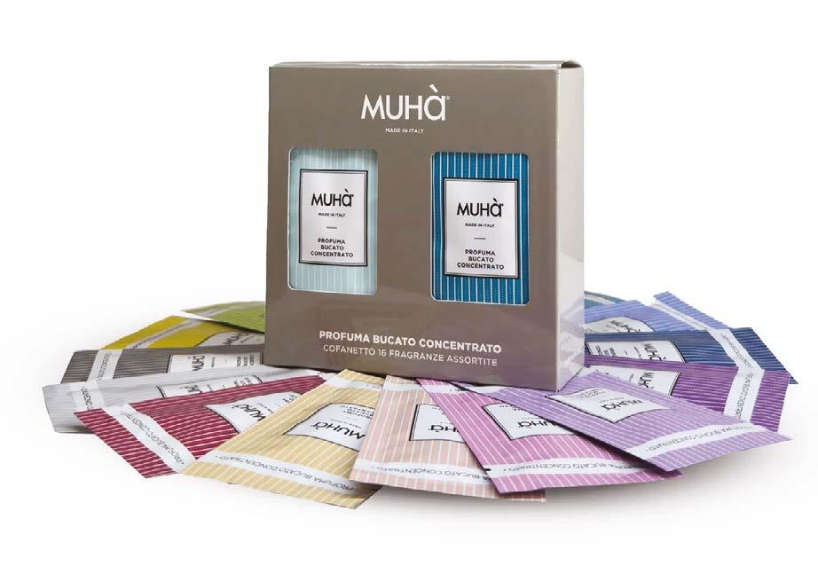 Designed for those who love to choose their fragrance based on mood or moment, the Muhà Profuma Bucato Discovery Kit includes 16 single-use sachets of 10 ml, each featuring a different scent. Perfect for alternating as desired or discovering the essence that best suits your wardrobe.