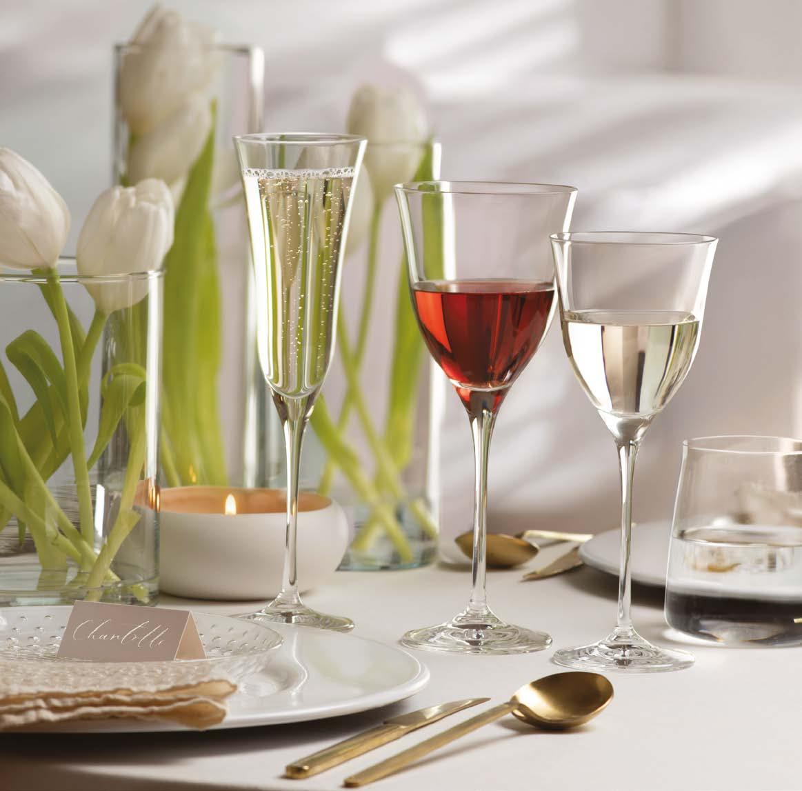 The new Sangiovese and Lady stemware embody a perfect balance between aesthetics and practicality: their visual lightness is accompanied by surprising resistance, making them ideal allies for versatile and sophisticated table set-