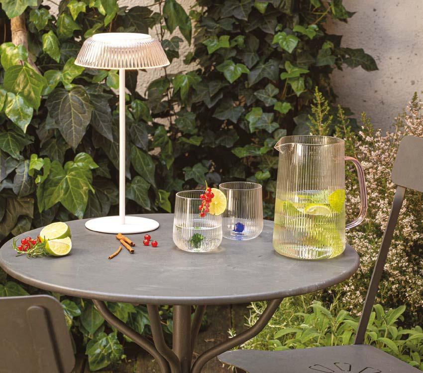 The glassware collections, including Gemme which also features IVV's rst table lamp, with their colors represent the desire to continue in the tradition's footsteps – the use of color in glasses has always been a symbol of IVV's production – while combining research and originality in the choice of materials and design, also expanding the concept of décor.