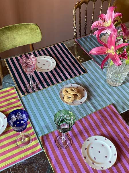 My love for fabrics was born during afternoons spent with my grandmother, who used to sew clothes for my dolls. She was a professional seamstress and taught me the value of manual work. I didn’t learn her craft, but I understood that designing fabrics, choosing their colours, and creating my own collections would make my work unique and recognizable. Also, I could never fnd the fabrics I wanted to use in my interior design projects, so I started making them myself—daring with colours, bringing stripes back to velvets, and enhancing foral and striped patterns that now defne my work.