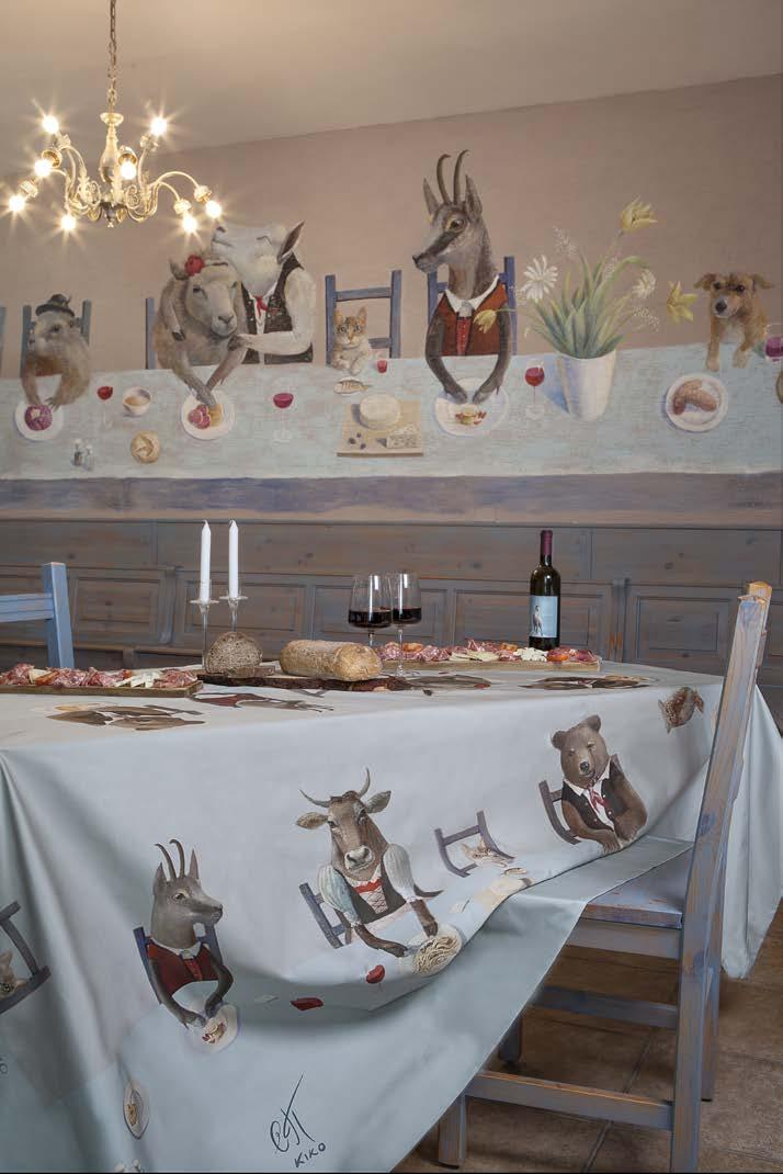Bosco d’Inverno is the design by Mirabello Carrara, created in collaboration with painter, musician, and composer Nicola Pankoff for the winter collections. A fantastical, surreal fresco that dresses the holiday table in bio satin fabric, featuring bold colors and fairytalelike details inspired by the forest. A magical touch for the Christmas Eve dinner. Available in sizes 150x230 cm and 150x260 cm.