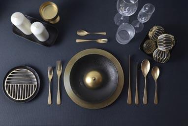 Fluid, soft, elongated lines: this is how Pinti reinterprets the new mise en place, with the elegant Audrey Velvet Honey cutlery set (design by Marcello Ziliani). The special finish, achieved through a double sandblasting process, creates a delicately textured effect and is available in various metal-inspired shades. Brand new is the Audrey Champagne version, inspired by the soft hue of the wine of the same name.