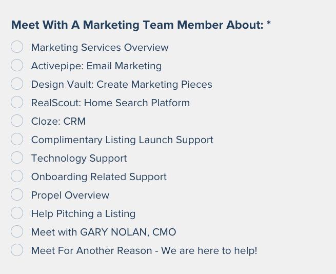 Marketing Services Overview Develop Your Elevator Pitch Create a Listing Marketing plan Propel Overview