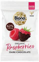 Dark chocolate is featured in the new snack range from Windmill Organic’s Biona brand. Three new additions to the line-up are Salted Caramel Dark Chocolate Almonds, Dark Chocolate Coated Raspberries and Dark Chocolate Coated Ginger. These come in fully recyclable paper packaging.