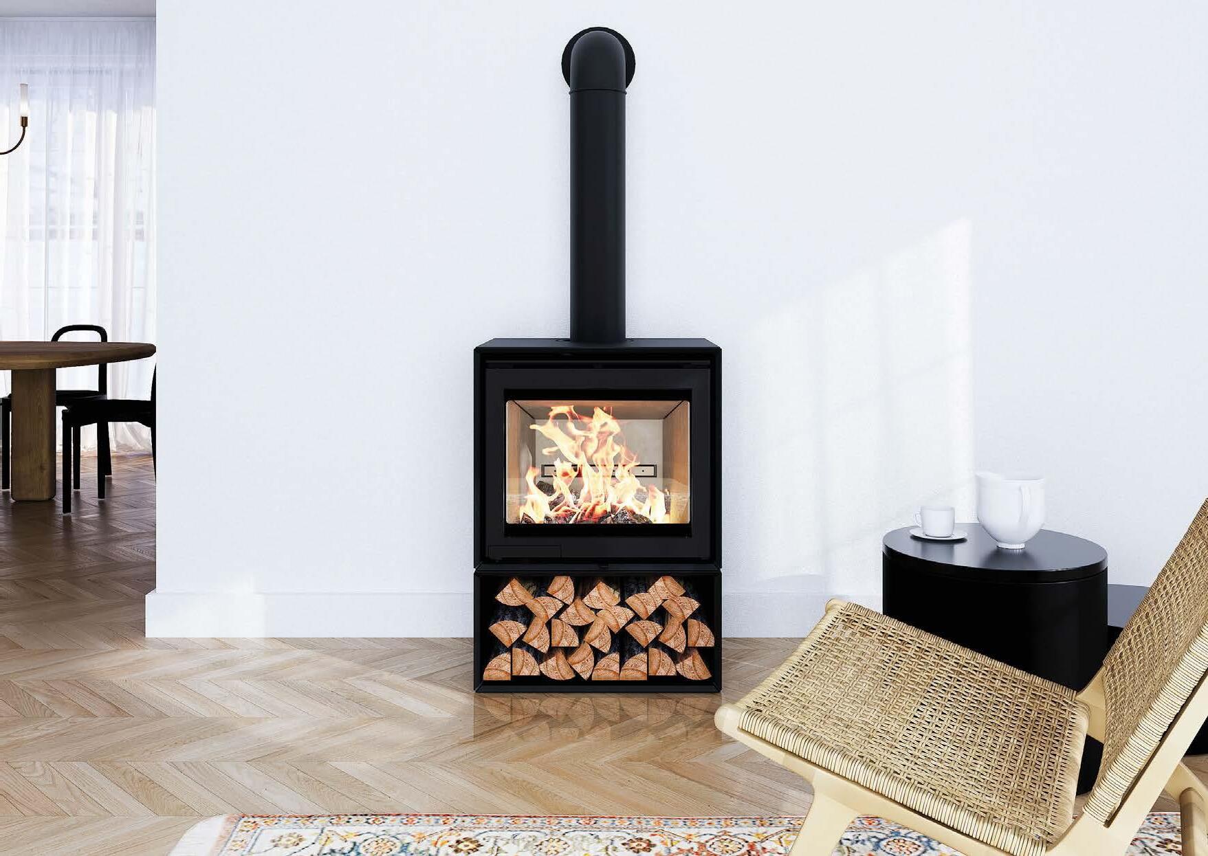 - Bûcher intégré espace de rangement pratique sous le foyer pour stocker vos bûches.