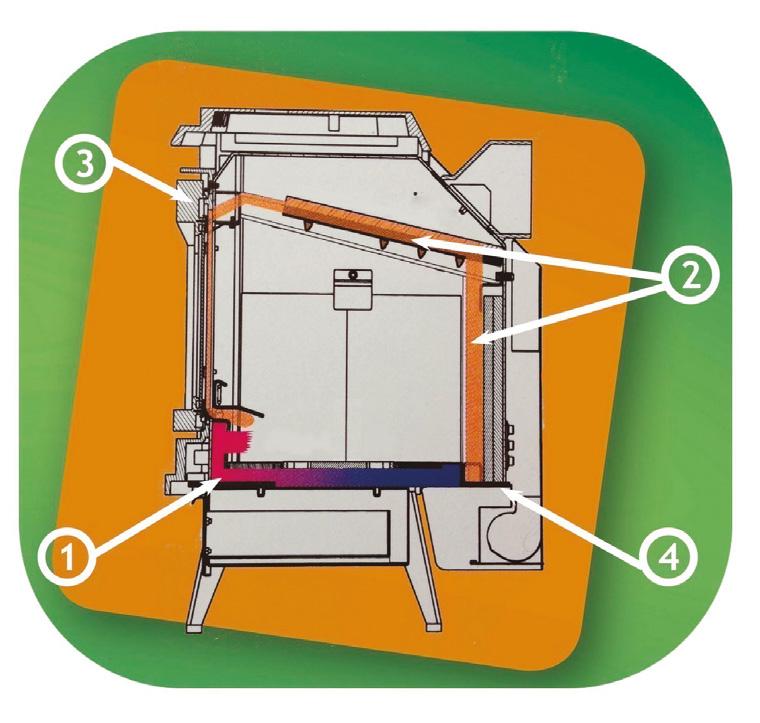 2 Un apport d’air préchauffé diffusé par 2 canaux distincts, garantit une combustion optimale.
