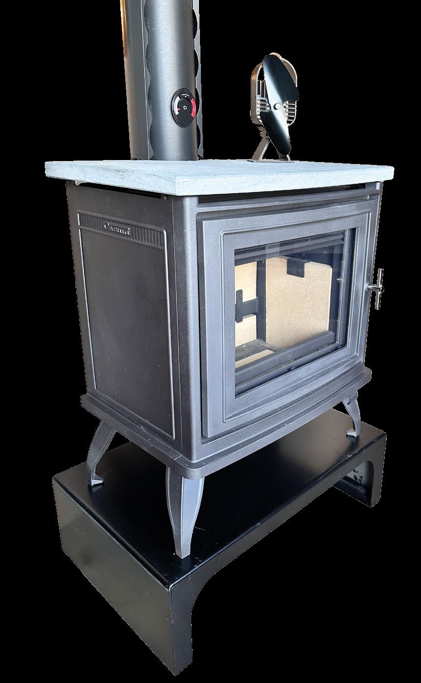 Le Warmheart produit suffisamment de chaleur pour garder la pièce bien au chaud en même temps que de bouillir un ragoût sur la plaque de cuisson ou de griller des steaks dans la chambre de combustion.