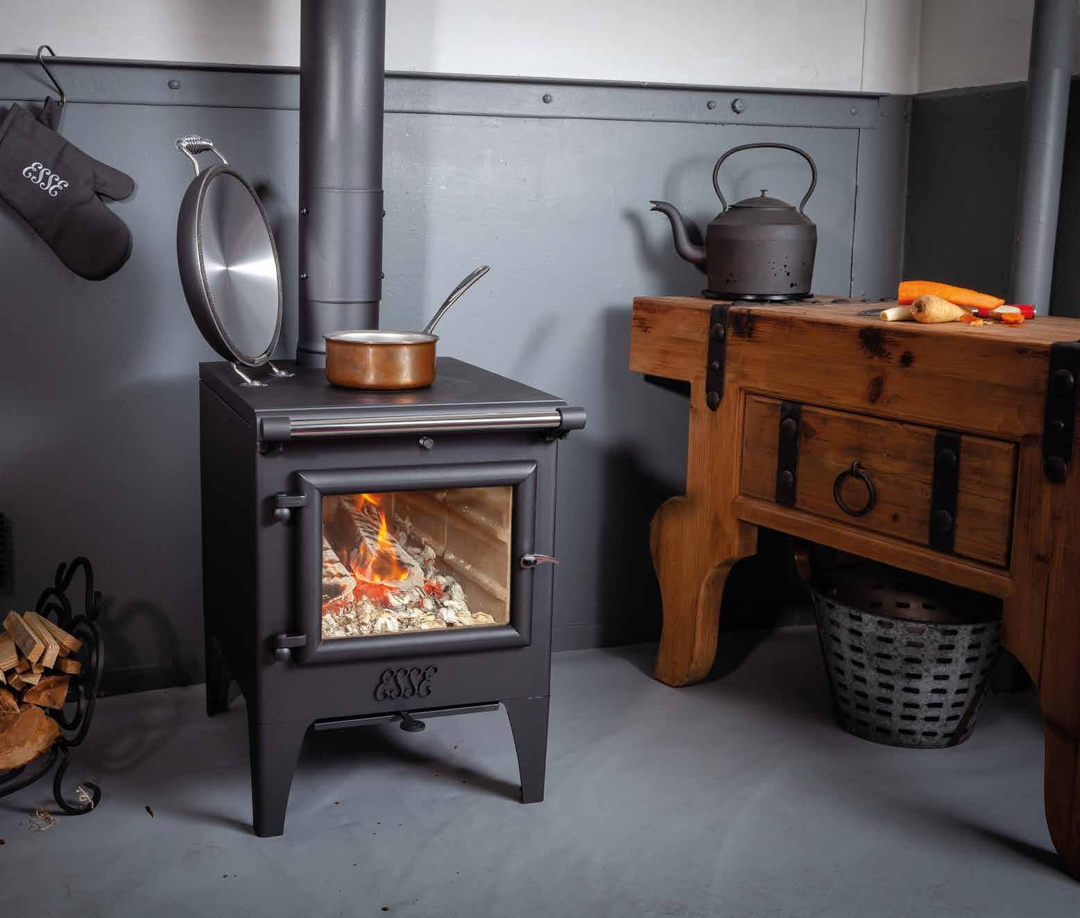 La technologie du poêle à transfert de chaleur ESSE canalise la chaleur de la chambre de combustion jusqu’à la plaque de cuisson température graduée, ce qui donne une température de cuisson en quelques minutes d’allumage.