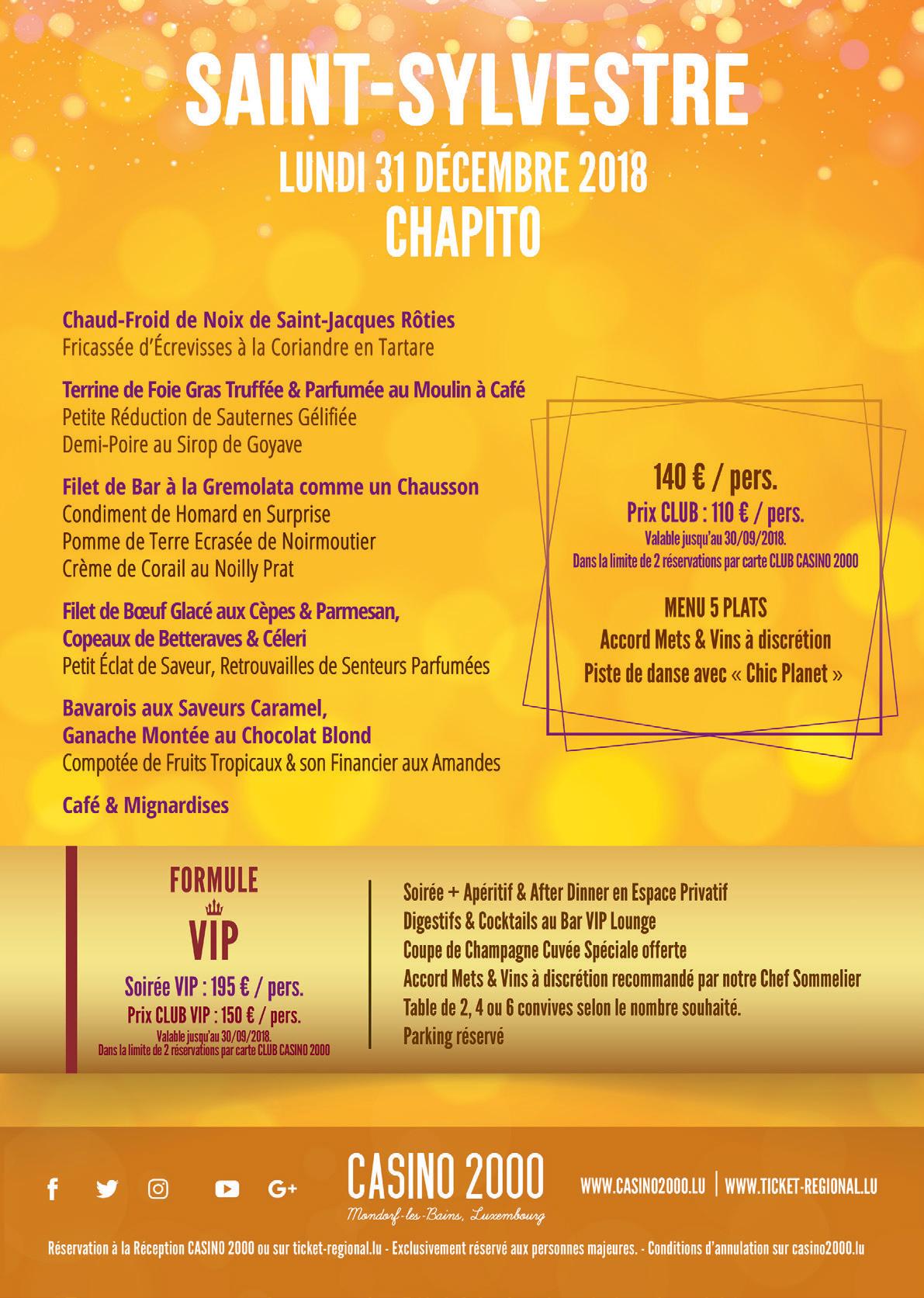 Réservations et renseignements sur www.casino2000.lu