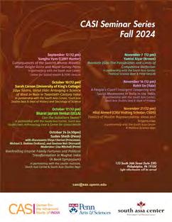 CASI’s Visiting Scholars/Fellows Program is designed to bring individuals to the University of Pennsylvania with different areas of expertise from academia, the bureaucracy and civil services, NGOs, and civil society (such as media). Scholars and fellows participate in CASI events; engage in scholarly research projects; present their research as a part of the CASI seminar series; and interact with students, Penn faculty, and researchers.
