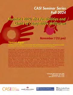 UPIASI also continued to grow the Postdoctoral Fellowship program this year with the continued support of Vayu Garware, Penn Alumnus and CASI’s International Advisory Board (IAB) member. The fellowship offers young scholars with recently completed Ph.D.s, an opportunity to pursue independent research projects on topics of contemporary India. For the 2024–25 period, we have recruited a new Postdoctoral Fellow, Aparna Pasumarthy, Ph.D. from Queen Mary University of London, who will be working on Professional Women’s Careers in India. Her project titled “In Pursuit of Sustainable Careers: Navigating Parenthood, Careers, and Life,” focuses on the challenges Indian working parents face in balancing careers and parenthood, especially in gendered workplaces and informal economies.