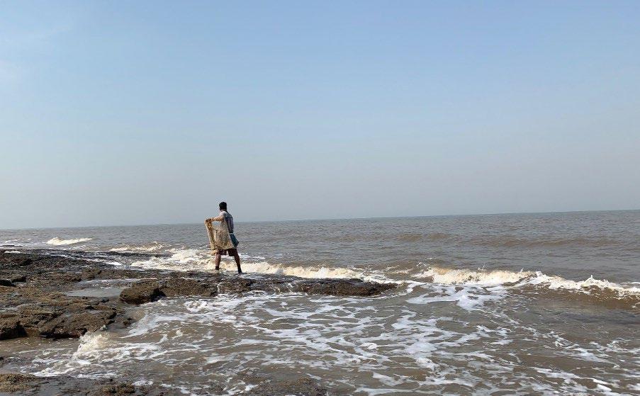 The photographs and the two video presentations online stage this tension. The first video presentation dwells in the ongoing histories and processes of land expropriation that make Mumbai at considerable cost to its indigenous fishers and non-human residents. Massive coastal infrastructure projects seek progress by flattening, straightening and drying the city. The second video explores how Koli fishers deploy linear and cyclical spacetimes to reveal fish. Fisheries are the spaces that become and move with the festivals and the tides, with prayers and the sun.