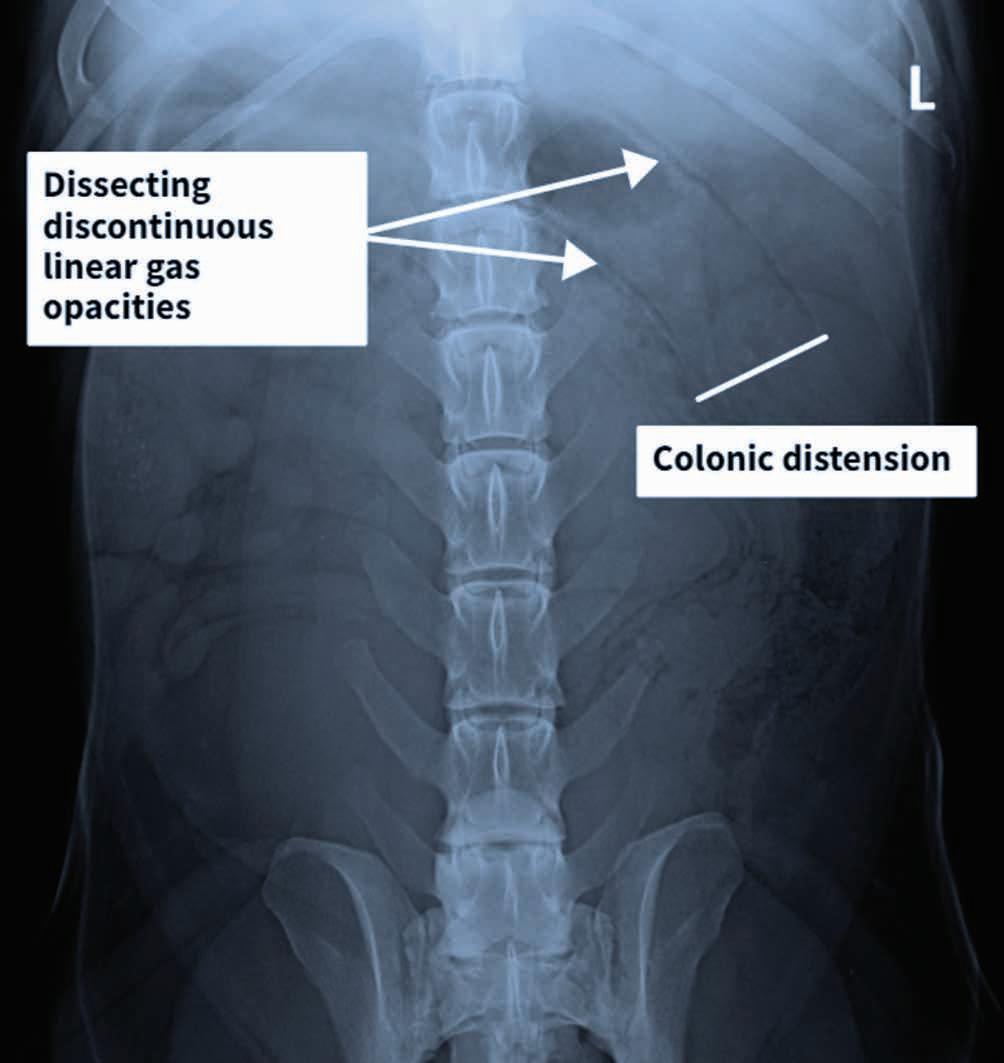 Fisk A, Allen-Durrance A. Pneumatosis coli in a Dog. Journal of the American Animal Hospital Association 55, e554-01, 2019