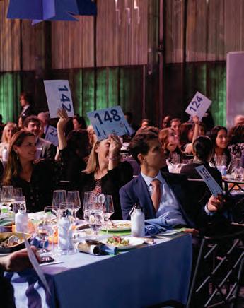 Photo Key: 1. Children’s Aid staff honoree representatives with President and CEO Phoebe C. Boyer, pictured in the center of the group. 2. From left, student co-hosts Daren Manning and Sockona Doucoure emcee the event and describe their experiences at our Hope Leadership Academy. 3. Guests raise their paddles in support of our young people during the direct pledge and auction. 4. Back row, from right, David Vaucher and Trustee Gregory E. Kerr, M.D., with their table guests. 5. At the cocktail reception, from left, Trustee Eren Rosenfeld, Trustee Russell Diamond and Mica Diamond, and Trustee Linda Kao. 6. Children’s Aid youth ambassador Tauryian Sparrow recounts her years in our foster care program and her relationship with her Children’s Aid mentor. 7. Executive Vice President Sandra Escamilla-Davies speaks from the podium. 8. Piper Sandler guests with Todd Snyder, fifth from left, and President and CEO Phoebe C. Boyer, sixth from left.