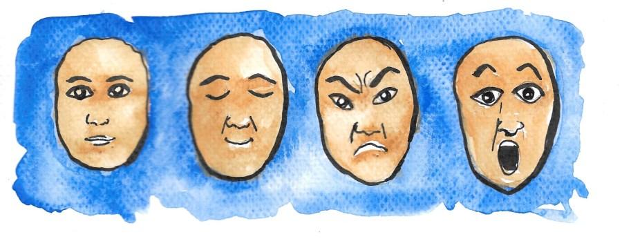 Sloupečky drobných hrbolků od pana Brailla, piktogramy, zaťukání na , úsměv od k , smích předstíraný.