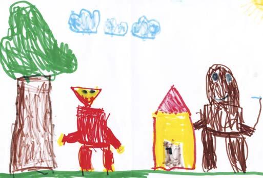 Раз кед пришол дому, видзело им ше же у оводи було интересантно,бо бул веселши як звичайно. ‒ Бавели зме ше на гайзибани. Дзеци ше полапали єдни другим за плєца и так ше направел гайзибанчок хтори путовал по учальнї доокола, а вец гайзибанчок вишол и вонка,та ше врацел нука. Дахто бул локомотива,та бул перши и пискал. Дахто бул ваґон, дахто бул бачи цо препущує гайзибан, дахто дзвигал рампу... ‒ А цо ти бул? – сцела знац мац. ‒ Я бул одквачени ваґон ‒задовольно одвитовал Владко. Гвари ше же божа катичка приноши щесце. Нарисуйце кеди сце остатнїраз були щешлїви.