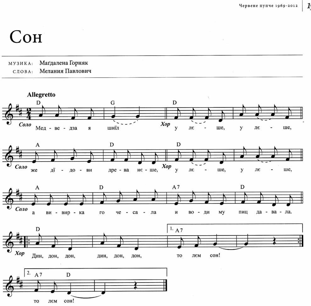 Чи то було наисце, чи лєм сон же медведз дїдови ношел древа?!Пречитай у тей писньочки, а потим ю пробуй и одграц на даєдним инструменту. Кед нє знаш грац, нє важне, ти шпивай, а пайташ, лєбо пайташка най ци граю. ♫♫