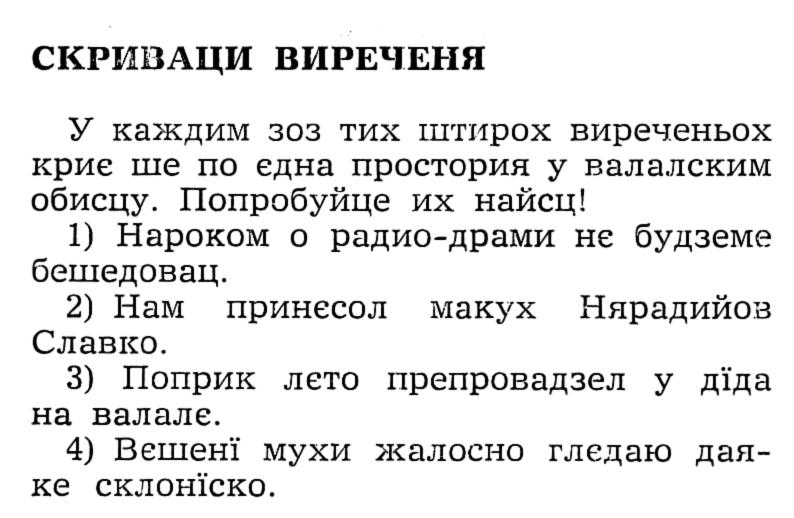 Пред тим як почнєш ришовац тоти задатки, хтори обявени у „Заградкох” 1991, 1994. и 2000. року, порихтай клайбас,добре ше сконцентруй и подцагнї слова хтори ше скриваю у тих виреченьох. Потим и ти пробуй видумац даєдно скриваце виреченє.