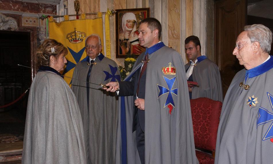 Referendario Raffaele Pre ziuso, il Gonfaloniere Adolfo Della Monica, il Preside del la Calabria, Ettore Zagarese, la delegata di Cosenza, Dama Nicoletta Bauleo, il delegato della Puglia, Renzo Paiano, il delegato di Napoli Domenico Cuozzo, di Foggia Amerigo Giacò, gli Scudieri Francesco Zagarese e Paolo Marino, le Dame di Commenda Annama ria Ceriello, Emilia Grassini, le Dame Nunzia Capobianco e Antonella Carriero. Tra i rap presentanti di altre nazioni, il delegato della Francia, Cavalier Jean Claude Forestier, e il delegato della Palestina, Cavaliere Ufficiale Jehad Farraj. Quest’ultimo, al termine della cerimonia ha consegnato il dono della croce di Terra Santa a Monsignor Depalma e la scultura della Sacra Famiglia per il Gran Maestro. Tra le autorità pre senti, esponenti del mondo civile e politico tra cui il Primario Ennio Zerrillo, Cavaliere di Gran Croce dell’Ordine Equestre del Santo Sepolcro, e il neo eletto Deputato della Repubblica, Pasquale Penza, al quale è stato consegnato dall’Ambascia tore Rebernik il crest dell’Ordine quale segno di vicinanza al mondo della politica e delle istituzioni da parte dell’antico so dalizio, che ha avuto tra i suoi esponenti di spicco il compianto onorevole Paolo Barbi. Al termine della cerimonia ecclesia stica sono proseguiti i festeggiamenti con la consueta cena di gala, durante la quale il Luogote nente Generale Biagio Abbate ha ricordato che la storia dell’Ordine dopo quasi due secoli dalla rifon dazione, ad opera del Conte Vin cenzo Abbate de Castello Orleans, continua la sua opera caritatevole a sostegno dei bisognosi, delle ra gazze madri, delle vedove e dei meno abbienti seguendo l’esem pio della compatrona d’Europa Santa Brigida di Svezia.