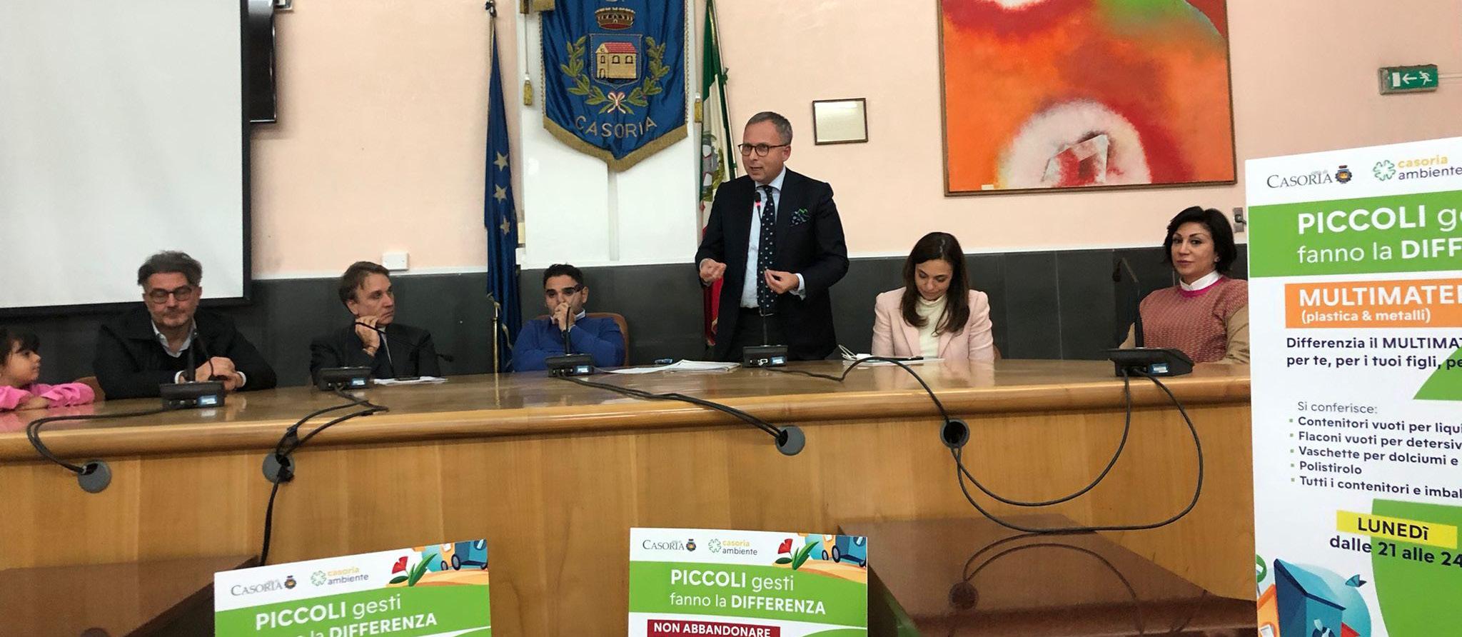 Mercoledì 21 novembre, nell’Aula Con siliare del Comune di Casoria si è tenuta la conferenza stampa di presentazione della campagna di sensibilizzazione “Piccoli gesti fanno la differenza” orga nizzata da Casoria Ambiente. Al tavolo dei relatori il sindaco di Casoria Raf faele Bene, il vicesindaco ed assessore all’Ambiente Paola Ambrosio, l’asses sore alle Politiche Sociali Marianna Ric cardi, l’amministratore unico di Casoria Ambiente Massimo Iodice e il direttore tecnico Antonio Isoldo. All’evento spic ca la partecipazione tra il pubblico di rappresentanti degli istituti scolastici e della cooperativa “L’uomo e il legno” molto attiva sul territorio. “Oggi è soltanto il momento di presen tazione di una campagna di sensibilizza zione che durerà a lungo. L’obiettivo è aumentare la percentuale di raccolta dif