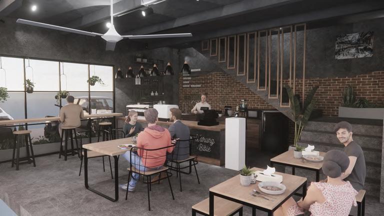 Meja dan kursi bar akan menghadap ke arah bukaan jendela dengan jumlah kursi sebanyak 3 Meja bar berukuran 335x48x90 cm sedangkan pada kursi memiliki diameter dudukan sebesar33cmdantinggi115cm