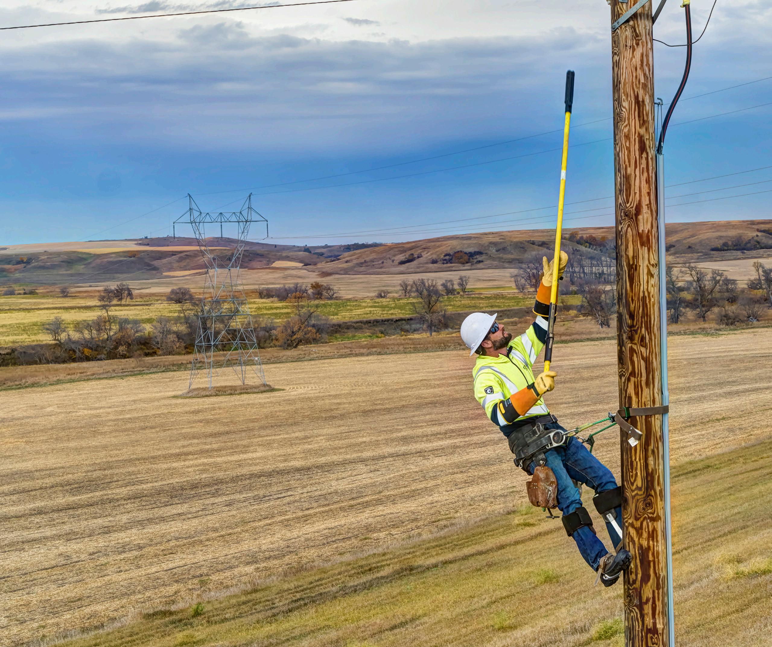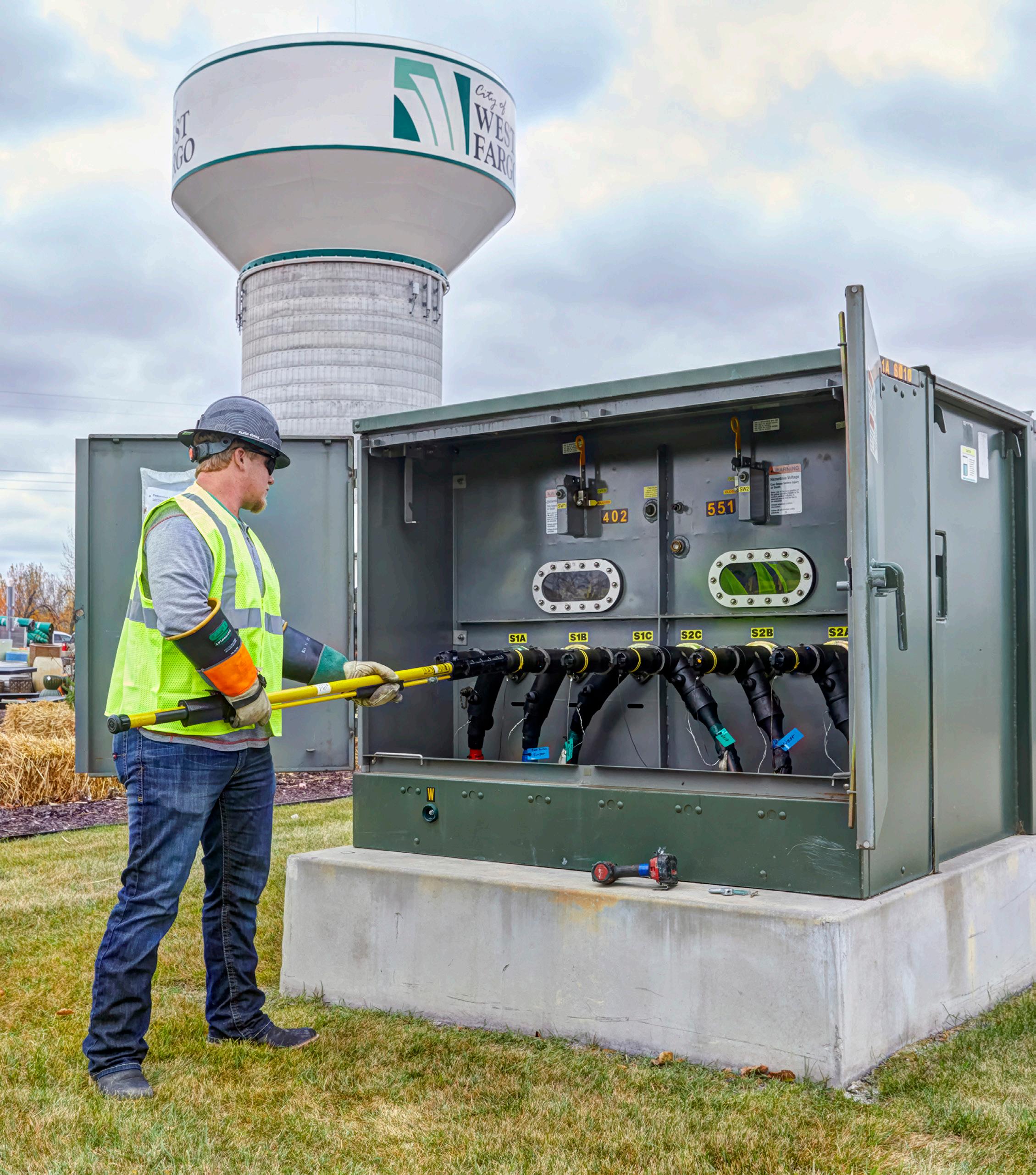 A CASS COUNTY ELECTRIC COOPERATIVE CONTRACTOR INSTALLS ELECTRICAL SERVICE TO SITE.