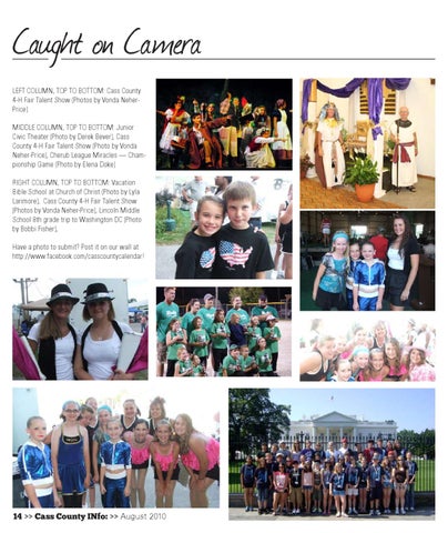 Caught on Camera ,%&4Ï#/,5-. Ï4/0Ï4/Ï"/44/- Ï#ASSÏ#OUNTYÏ (Ï&AIRÏ4ALENTÏ3HOWÏ 0HOTOSÏBYÏ6ONDAÏ.EHER 0RICE Ï -)$$,%Ï#/,5-. Ï4/0Ï4/Ï"/44/- Ï*UNIORÏ #IVICÏ4HEATERÏ 0HOTOÏBYÏ$EREKÏ"EVER Ï#ASSÏ #OUNTYÏ (Ï&AIRÏ4ALENTÏ3HOWÏ 0HOTOÏBYÏ6ONDAÏ .EHER 0RICE Ï#HERUBÏ,EAGUEÏ-IRACLESÏ Ï#HAMPIONSHIPÏ'AMEÏ 0HOTOÏBYÏ%LENAÏ$OKE 2)'(4Ï#/,5-. Ï4/0Ï4/Ï"/44/- Ï6ACATIONÏ "IBLEÏ3CHOOLÏATÏ#HURCHÏOFÏ#HRISTÏ 0HOTOÏBYÏ,YLAÏ ,ARIMORE ÏÏ#ASSÏ#OUNTYÏ (Ï&AIRÏ4ALENTÏ3HOWÏ 0HOTOSÏBYÏ6ONDAÏ.EHER 0RICE Ï,INCOLNÏ-IDDLEÏ 3CHOOLÏ THÏGRADEÏTRIPÏTOÏ7ASHINGTONÏ$#Ï 0HOTOÏ BYÏ"OBBIÏ&ISHER Ï (AVEÏAÏPHOTOÏTOÏSUBMIT Ï0OSTÏITÏONÏOURÏWALLÏATÏ HTTP WWW FACEBOOK COM CASSCOUNTYCALENDAR