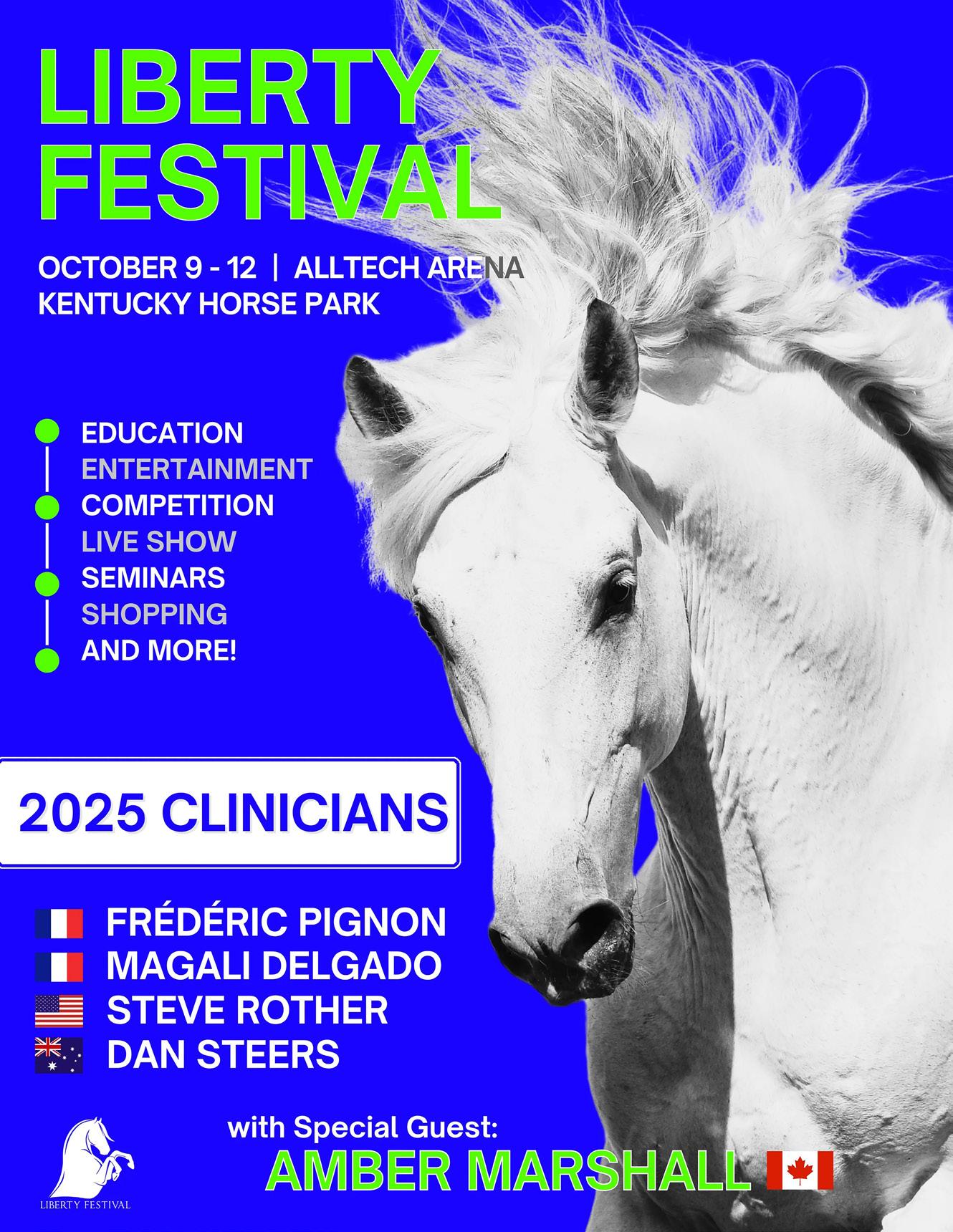 Join horse enthusiasts from around the world at the Liberty Festival, taking place October 9th-12th at the Alltech Arena, Kentucky Horse Park in Lexington, KY. This event is dedicated to exploring and celebrating the deep bond between horses and humans, focusing on liberty horsemanship.
