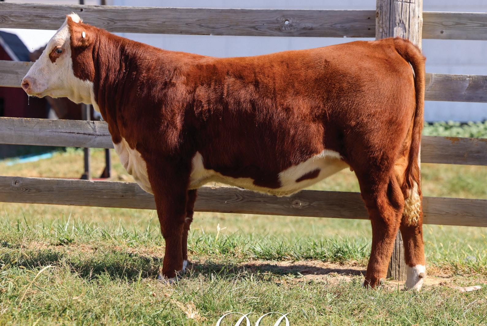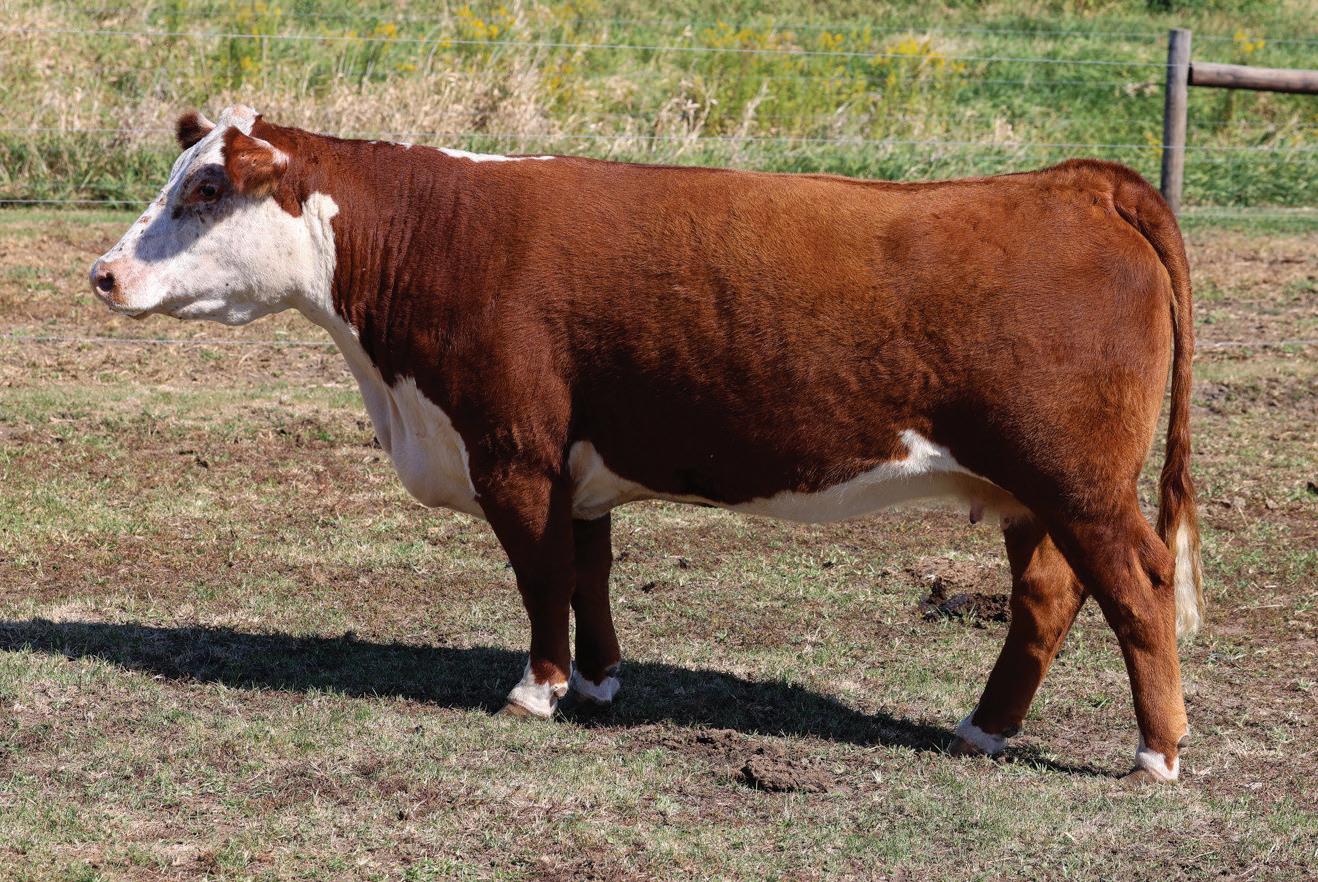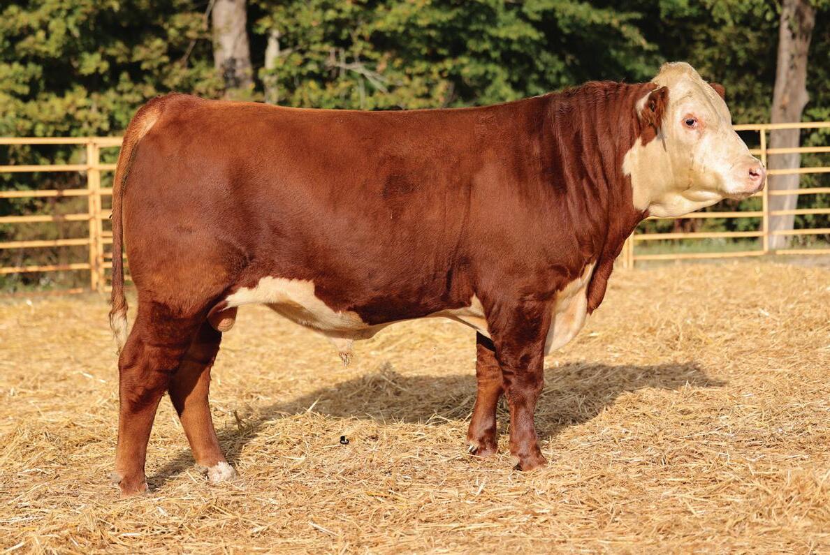 Jimmy has been one that has impressed from day one. He has always been stout made, deep-middled with plenty of foot and bone. His dam is really great cow for us that always raises one of my favorite calves year in and year out. Consigned by J. Lidy Herefords, 6750 E. 2200th Ave., Jewett, IL 62436, 217-821-9991.