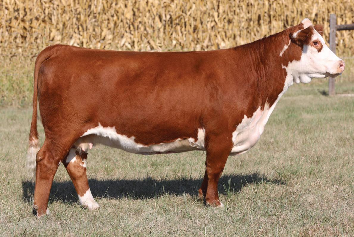 Another young Sierra daughter that weaned off an outstanding Small Town Kid 9023 heifer calf. She is very neat in her front 1/3 with a nice udder. Bred to GG MERIT 405 on 7-5-25, due 4-13-26. 405 started the NRSP this summer at Olsen’s in Nebraska Consigned by Greives Herefords - Bob Greives, 7591 Armstrong Chapel Rd., West Lafayette, IN 47906, 765-491-6277.