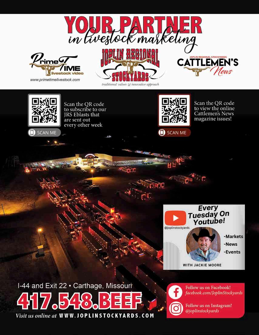 All cattle will be available for viewing on Friday, March 7 at Noon through Saturday, March 8 until sale time at Joplin Regional Stockyards, Carthage MO.