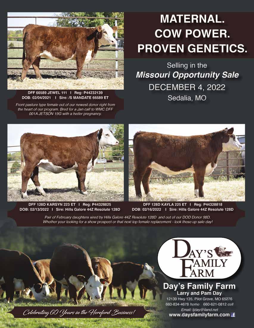 December 4 will include our Missouri Opportunity Sale in Sedalia. I am excited to see new consignors taking the opportunity to be able to market their cattle on a stage that might not be possible if it were not for this sale. If you are a consignor, make some calls, talk to people about what you have to offer, and I challenge you to invite someone to the sale and follow up with them. I always look forward to this Hereford weekend in Missouri!