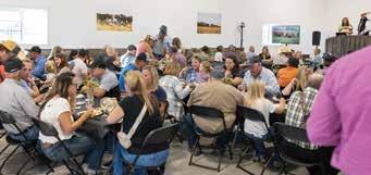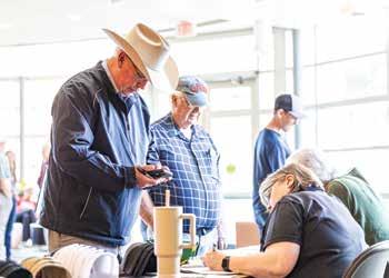 (left) Joe Rickabaugh, American Hereford Association Director of Seedstock Marketing, checks in with the clerks to grab buyer numbers before the LJR and Missouri State University 33rd Anniversary Genetically Yours Sale. (right) Cattle were appraised by many local and out of town guests at the Mountain Grove, Mo., farm.