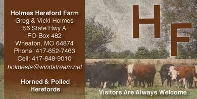 A few updates for the association include the Missouri Hereford Association (MHA) tour being held this past September with several in attendance and great sets of cattle on display. Ozark Fall Farm Fest held in Springfield, MO, allowed for more representation of the association and the Hereford breed. I would also like to invite everyone to the Missouri Opportunity Sale and the annual MHA meeting being held the first weekend in November at the Missouri State Fairgrounds in Sedalia, MO.