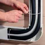 * Our ducts can be painted to blend with any exterior/interior colour palette. In order to ensure good paint adhesion, we recommend following paint manufacturers’ instructions for painting plastics (PVC, ASA, PE, PP). We recommend painting in bright colours only +++: super, ++: medium, ■: yes, □: no+++: super, ++: medium, ■: yes, □: no in pure white colour in ivory colour in cream white in black colour Fix the bottom parts of the fittings and the duct to the wall. Place the linesets and other duct contents in the bottom duct and strap the cable tie around them. Avoid crushing the drain hose and linesets Place and rotate the SpinFix clip on the rail inside the duct (cable tie open) step 1 step 3step 2 Better ducts, easier and faster installations With the SpinFix clip, it’s a 1 man job in only 3 steps: