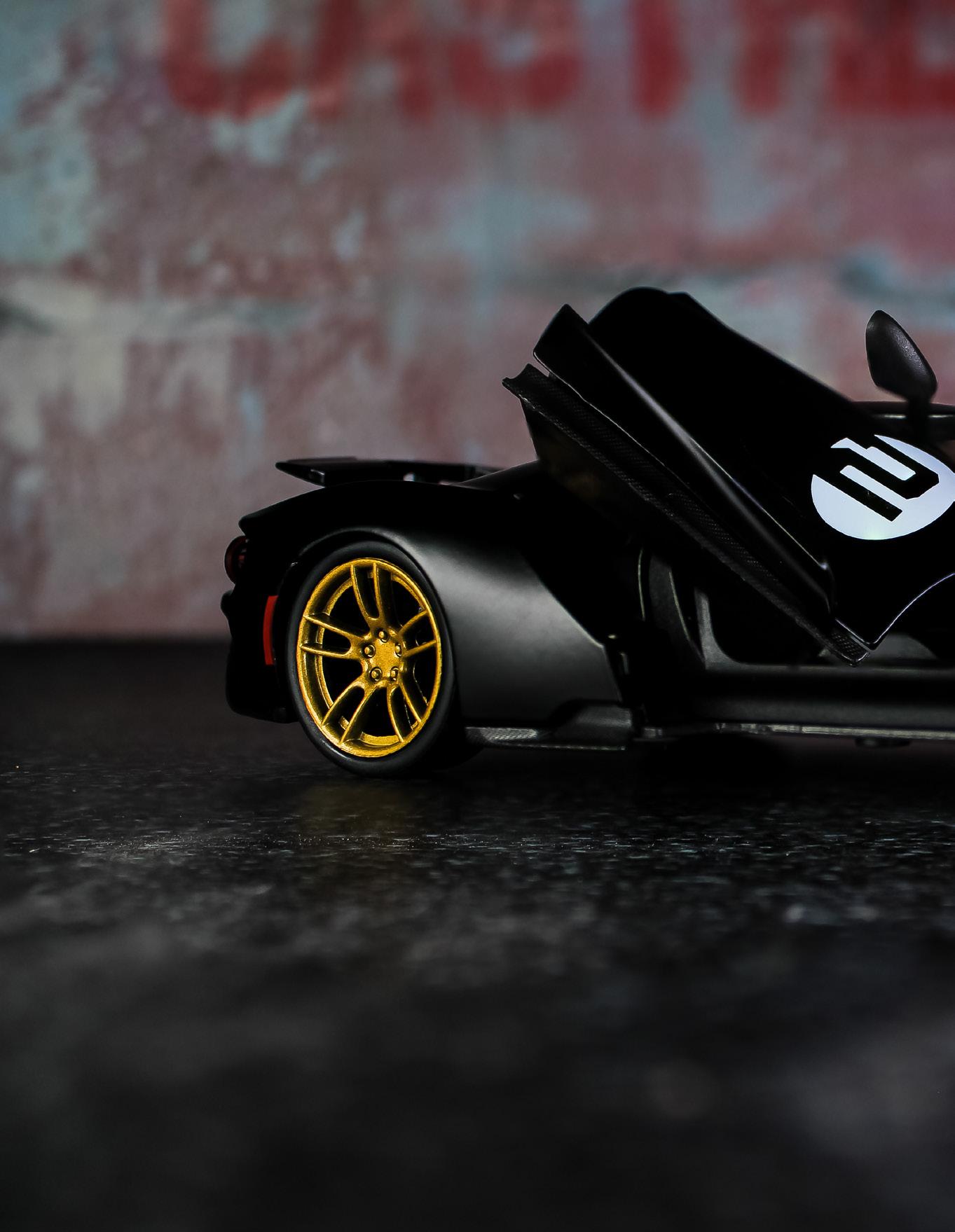 Another noticeable feature is the weight. This is a metal body casting but also has metal wheels rims which look better and roll better as well. Yes, POP RACE models roll! And, if you notice the ride height is one of the lowest, we have seen on 1/64. POP RACE design team have figured out a way of achieving this incredible ride height which is an epic feature along with rolling wheels. When you get your model you will notice the chassis is recessed, allowing the wheels and axles enough