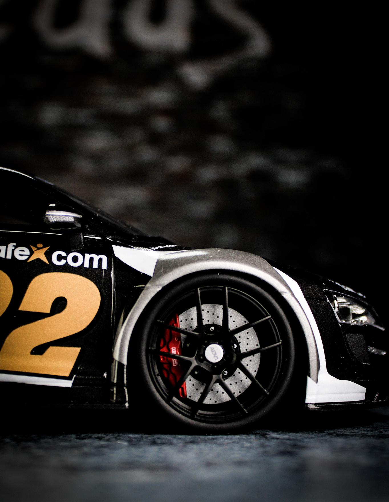IF YOU CAN GET PAST THE FACT THAT IT’S A RESIN CAR WITH NO OPENING PARTS YOU WILL FIND THE EXTERNAL DETAILS TO BE EXQUISITE WHICH YOU CAN SEE FOR YOURSELF IN THESE PICTURES. AND SHOOTING CARS WITH THIS MUCH OF DETAIL IS ALWAYS FUN BECAUSE YOU CAN CAPTURE CERTAIN AREAS CLOSE UP. LIKE THE WHEELS AND SLOTTED BRAKE DISCS.