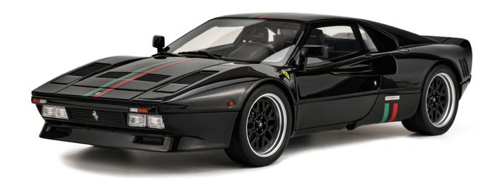 One of the rarest Ferraris out there, with only 273 actual models were ever built. The myth exists that they were made for Group B racing but they remained road cars throughout their production run. GT Spirit presents this in glossy black with the green/ red racing stripes.
