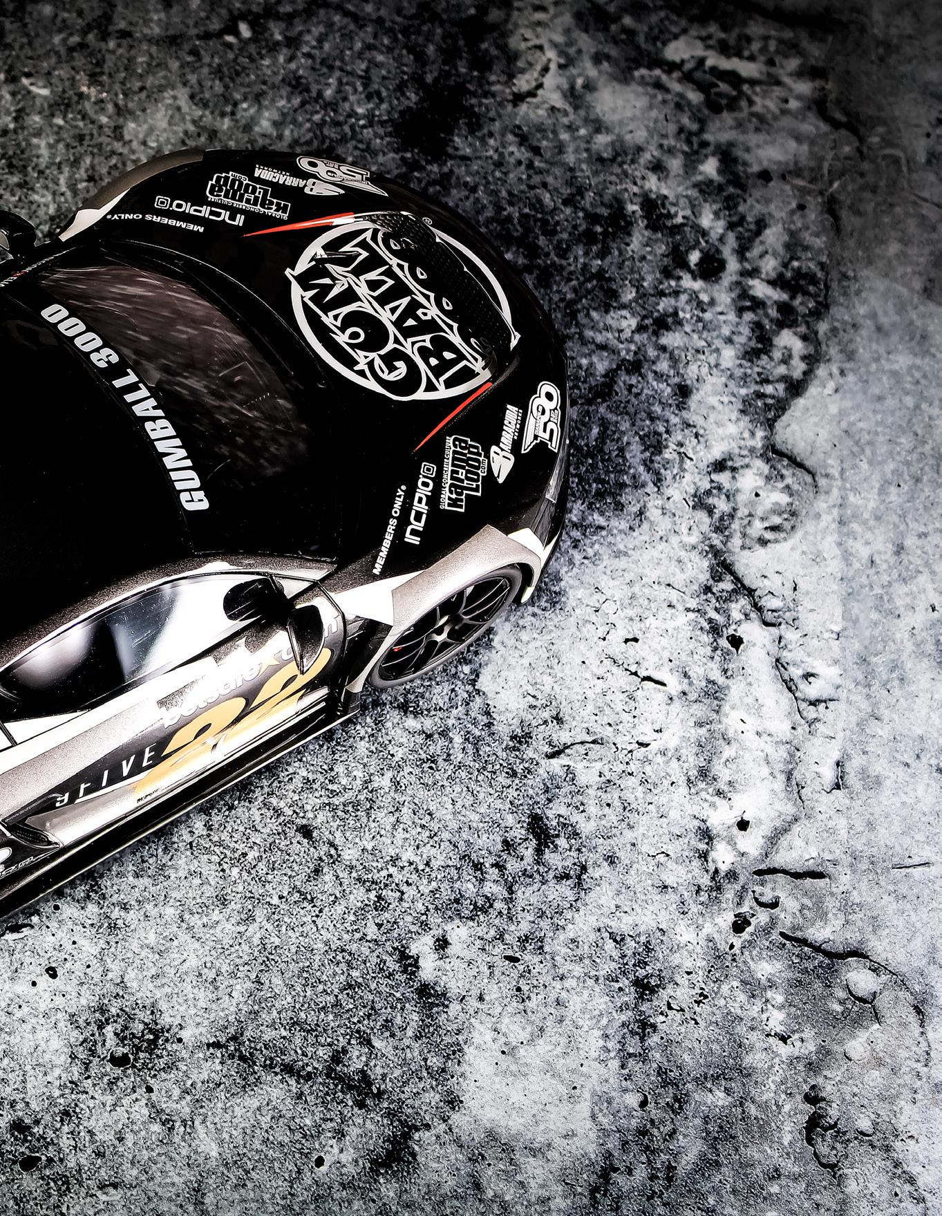 It truly is gorgeous, and collectors are waiting for this like BOND fans wait for a new 007 movie. Details are spectacular and considering this is a prototype that we have in our hands I can only think of great things headed our way. Carbon Fiber surrounds the car on various parts and close up views are giving me goosebumps. I also cannot find any fault with the paint job that has been applied well and the sports brand decals are clear and sharp, out the box first impressions "HOT DAMN POP RACE GIVE US MORE, MOOORREEE!!!! "