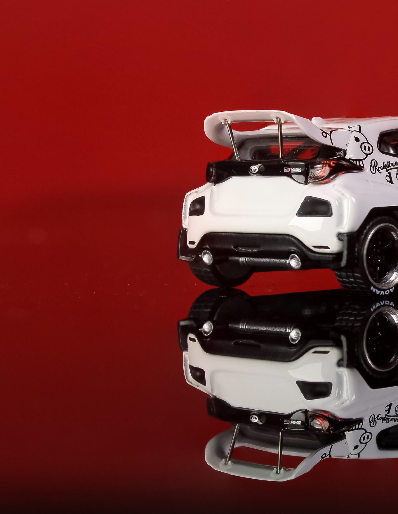When we talk about ‘low’ we are not talking about price, or production run. We are talking about ride height. ‘Pushing the envelope’ means we are going to be seeing a lot of little innovations in the scale of 1/64. POP RACE sent us two new tooling’s that will go on pre-order very soon. And according to the head of the company they want to bring as much realism to the models at the most affordable prices they can. And these two new Yaris’s are a great representation of what the next generation of diecast models will look like.