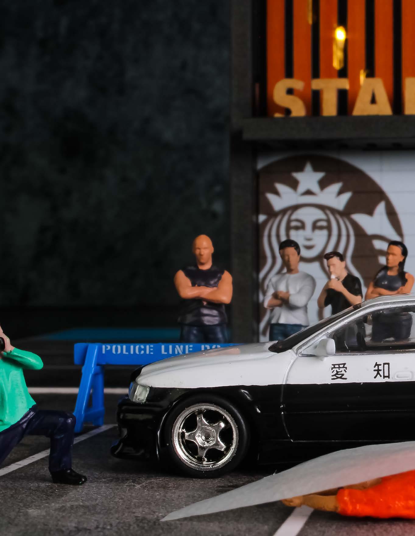 Much like Roger, we have not been able to tear our focus away from this model. Which has resulted in minor mishaps around the office. Finally, after being photographed many stubbed toes and spilt coffees were saved when this was locked away in our special collectible section underground. For those who collect Japanese Police liveried cars on the regular don’t you dare miss this? This is nice for the VERTEX collection, Chaser Collection and Police Car Section.