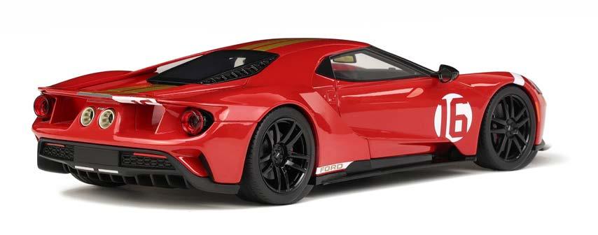 GT Spirit presents the Ford GT Alan Mann Heritage Edition in Red with gold stripes and exposed glossy carbon fiber. The Ford GT Holman Moody is presented in Gold with red accents to honor the original car.