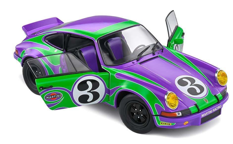 In 1970, the boss at Martini Racing offered the newly minted Porsche 917 longtail to the Porsche's new designer Anatole Lapine to decorate for the race. Using almost 1500 spray cans, Lapine created the swirling pattern to create a truly memorable racing car. Solido pays homage to it by covering its 911 RSR in that remarkable purple, green and white pattern. This is indeed a must have for any Porsche enthusiast.