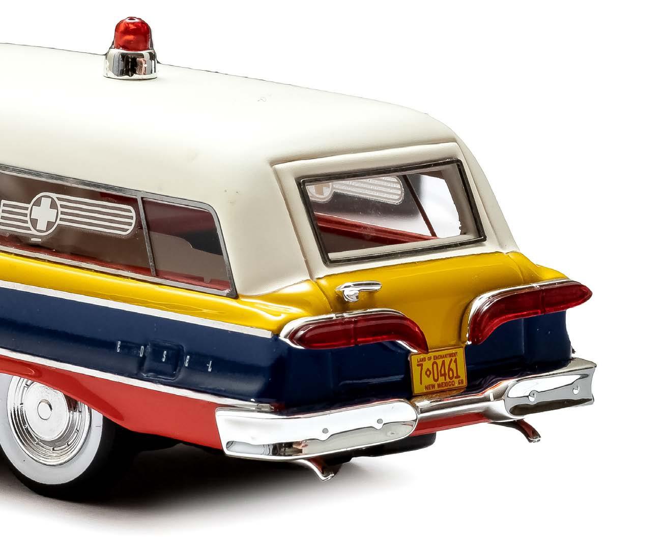 This 1/43 scale version from Esval is a great tribute to that tiny piece of history in the world of car history and their attention to little details makes them a good brand to invest your money in. If you look close enough, you can see the oxygen tanks inside at the back. I love those big fenders with sharp fins and strangely designed rear lights or the front grille which would give the new BMW a run for its money. I especially like the Bohemian color scheme chosen I just hope the paramedics all wore blue suede shoes.