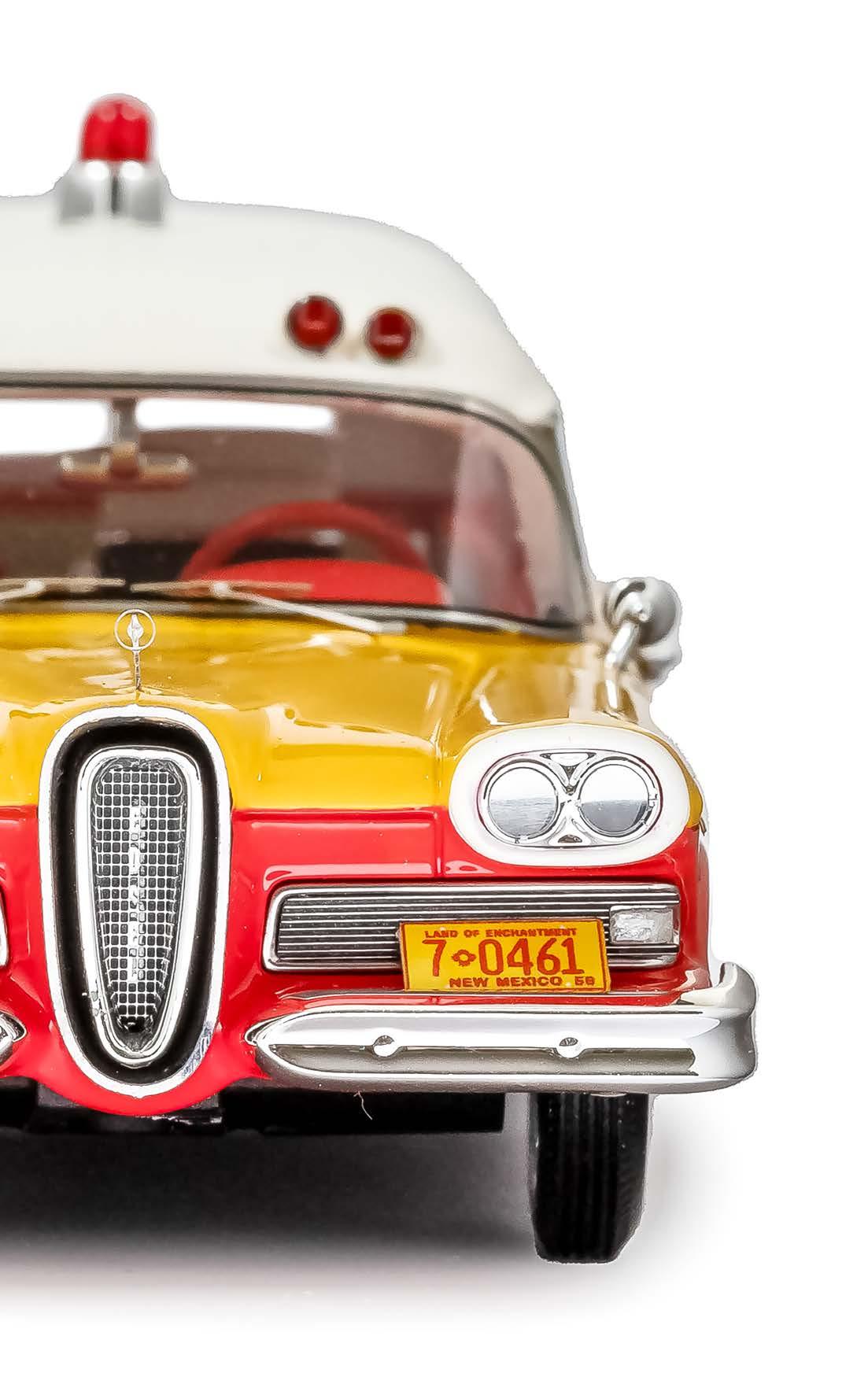 The fantastic thing about ESVAL Models is their wide range of classic American models that you usually only see in really old movies with actors like Humphrey Bogart and Elvis Presley. Cars that sported long fins and plenty of chrome, the size of small boats crisscrossing across America drinking petrol by the gallons. Under many layers of FORD, there was an attempt to introduce a 4th brand of car named after Edsel Ford. Unfortunately, EDSEL became an example of what car companies should not do and slowly faded away into the car history books.
