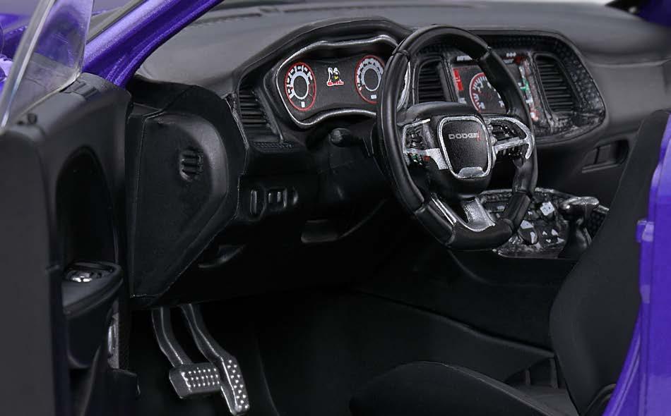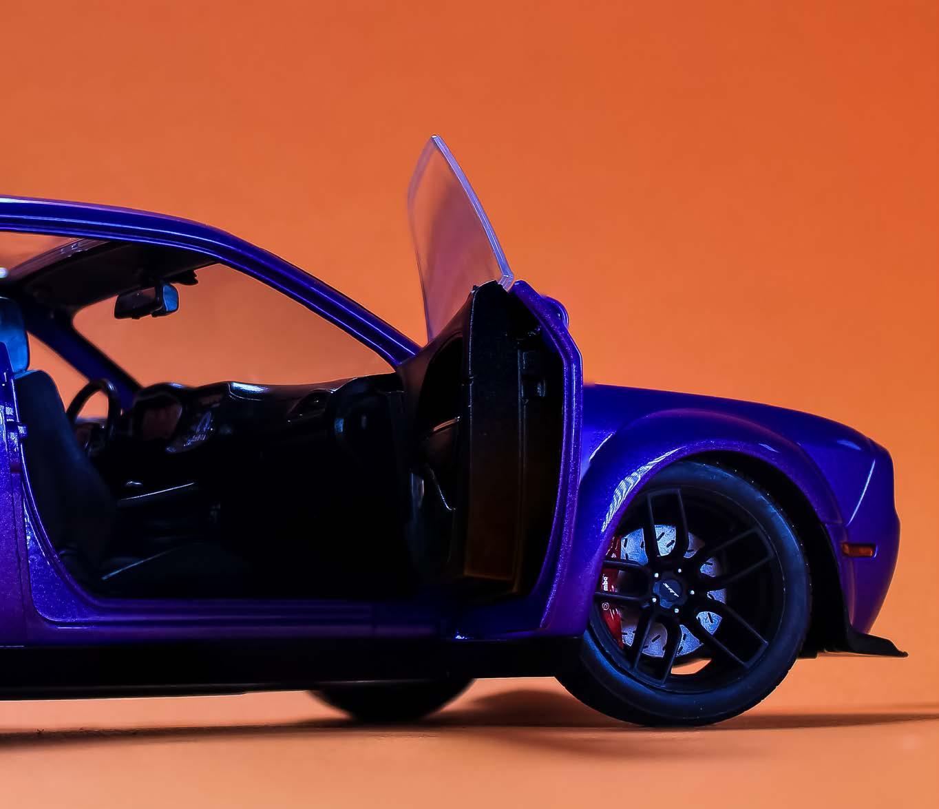 The deep purple paint job, gloss black aero addons and that thin yellow line in the front on the splitter is just the right amount of highlighting this car needs. In terms of bodywork, the molding has been done perfectly and both the paint and clear coat are done well. The interior is just stunning and we really can’t get enough of SOLIDO’s new approach to detailed interiors. They just keep getting better and better with every new batch of cars.