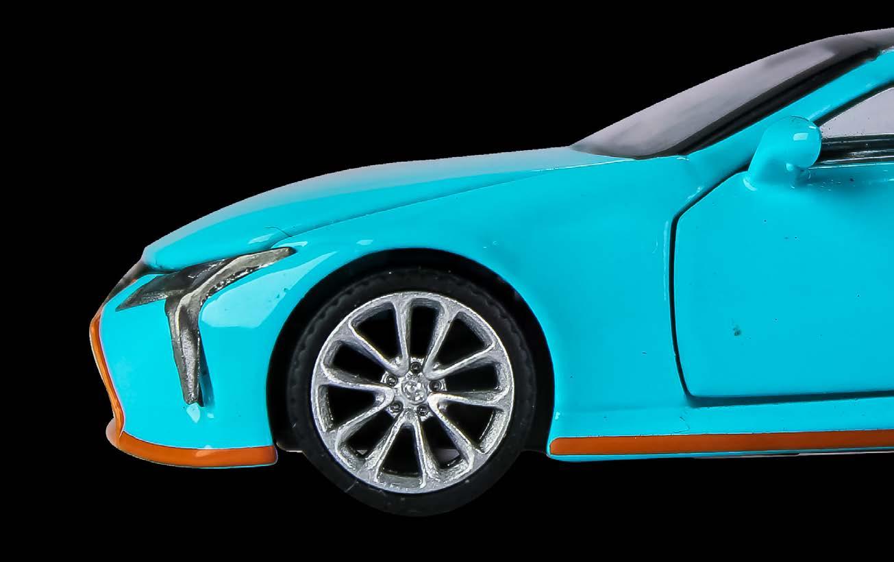 The surprises kept coming. I didn’t realize that the car has opening parts like opening doors and after discovering this I found out that the bonnet opened as well revealing a painted engine right down to the LEXUS logo on the turbo intercooler cover. WHAT!?!?!?! Where has this been hiding? The blue paint is cool but even cooler is the tribute to the gulf with the line of orange highlighting the body shape of the car and grille.